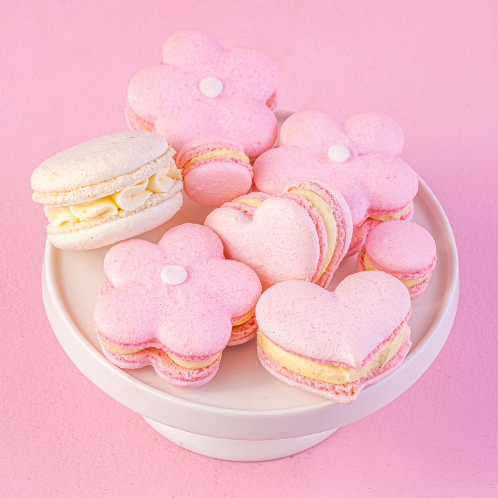Макаронс на миндальной пудре, с взбитым ганашем: ванильным и кокосовым, с начинкой манго