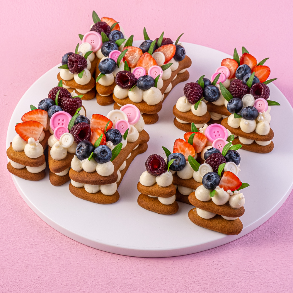 Медовые коржи с кремом чиз, клубничным конфи, малиновым мармеладом и ягодами