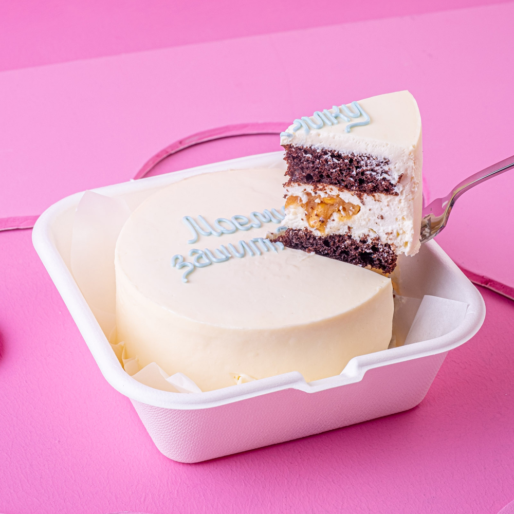 Сливочно-сырный крем, солёная карамель, арахис, шоколадный бисквит